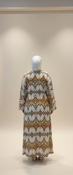 Abaya blanche/kimono de couleur jaune moutarde orange bleu