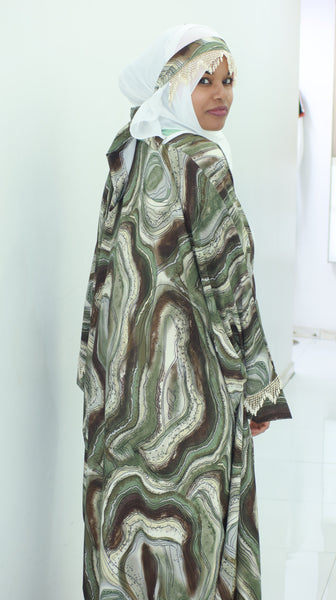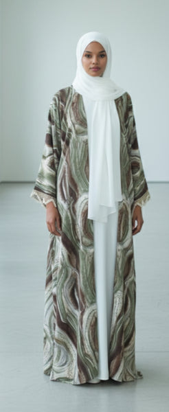 Kimono avec des perles sur les manches et sous abaya . Inclus foulard assorti.