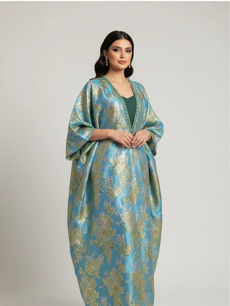 Découvrez l'exquise robe africaine en tissu brocart, un mélange parfait de tradition et d'élégance. Cette robe est conçue pour les femmes qui cherchent à ajouter une touche d'allure et de sophistication à leur garde-robe.