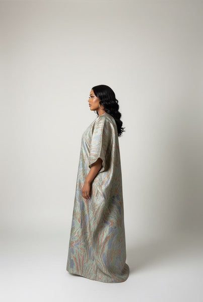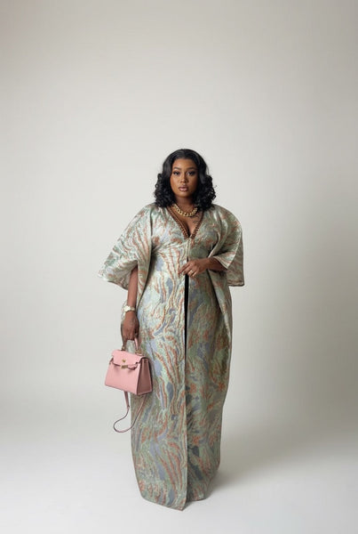 Découvrez l'exquise robe africaine en tissu brocart, un mélange parfait de tradition et d'élégance. Cette robe est conçue pour les femmes qui cherchent à ajouter une touche d'allure et de sophistication à leur garde-robe.